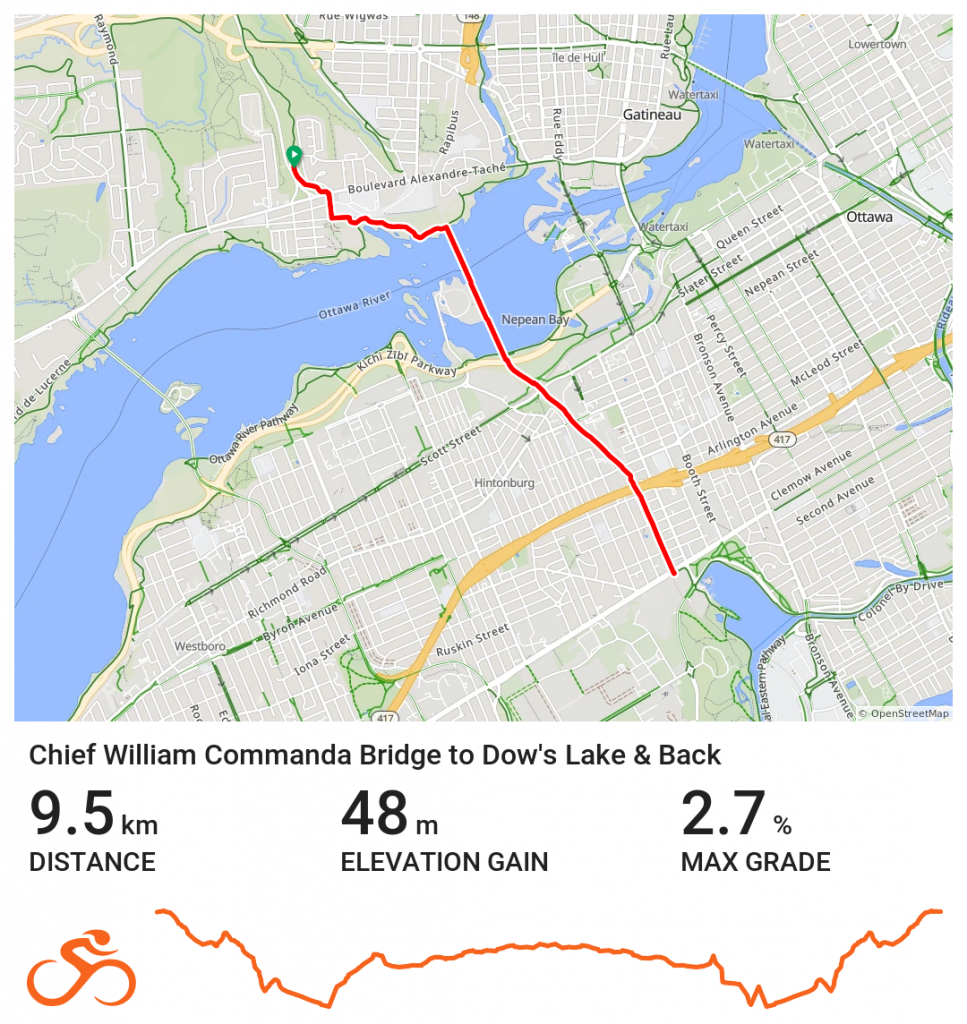 Another popular bike tour is this one across the Chief William Commanda Bridge to Dow’s Lake.
