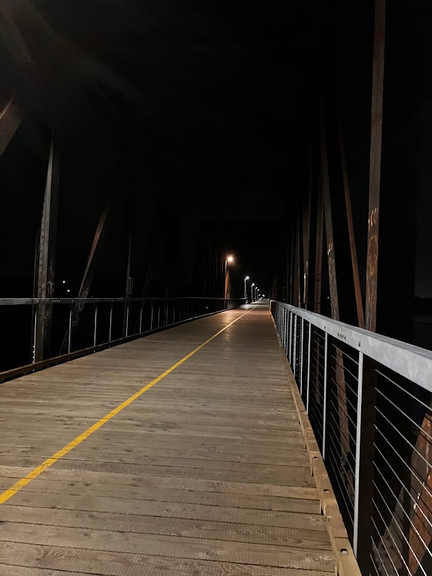 At night the bridge is well lit from end to end. However, the bicycle paths on the Quebec side are not. So you will need a light on your bike.